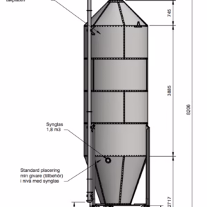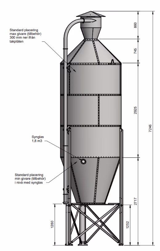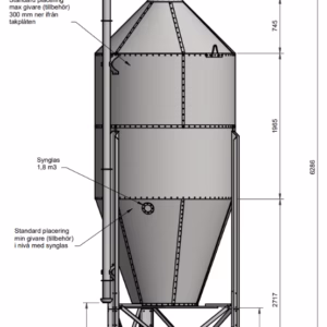 HUOM, siilo toimitetaan vakiona varustettuna täyttöputki, sykloni, jossa täyttö pitkäsäteisen mutkan kautta, sekä tarkastusikkuna.